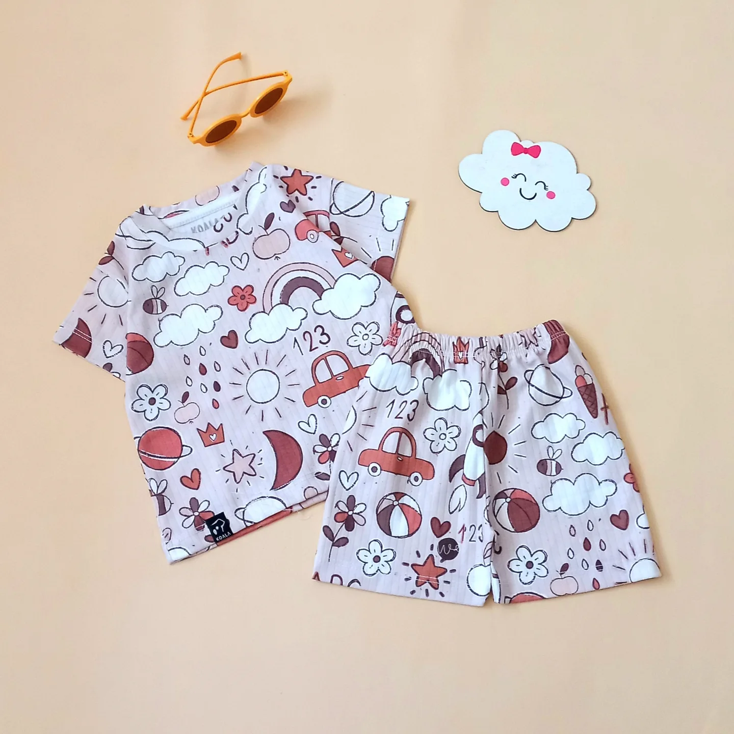 تیشرت و شلوارک تابستانی بچگانه طرح ابری